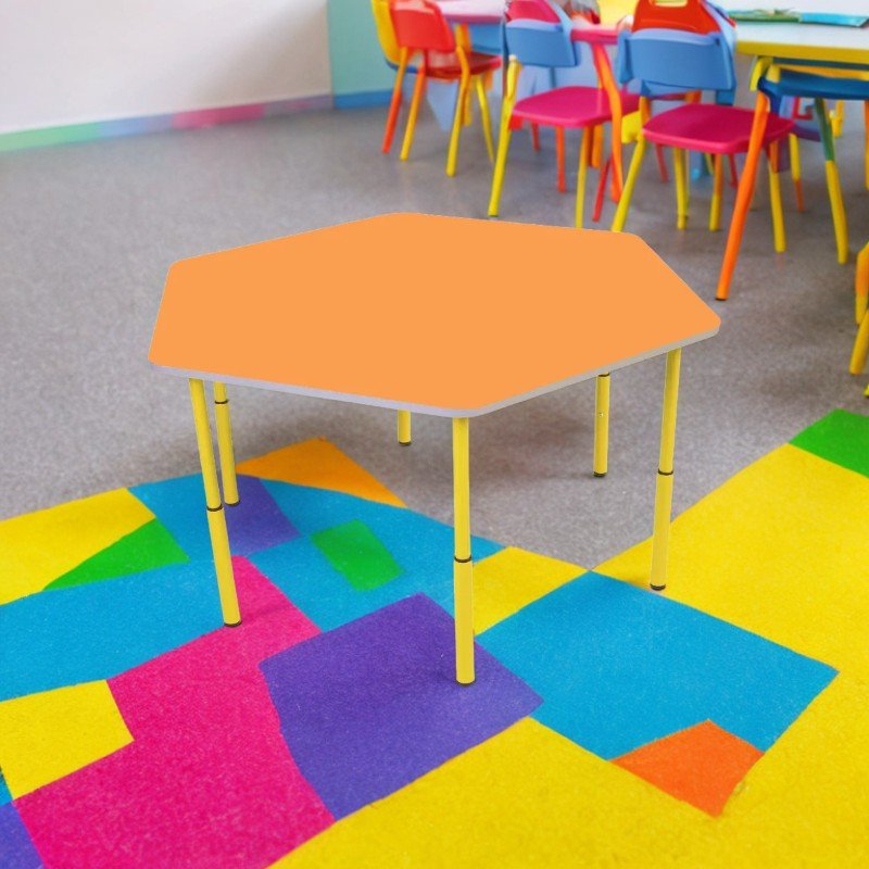 Masa hexagonală pentru grădiniță este special concepută pentru utilizare intensivă în mediul educațional, oferind spațiu generos pentru până la 6 copii. Designul ergonomic și colorat stimulează interacțiunea, creativitatea și lucrul în echipă.
