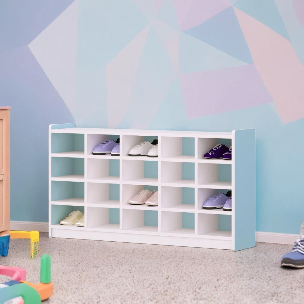 Etajeră practică și durabilă pentru depozitarea încălțămintei, realizată din PAL de 18 mm. Construcția include 4 nivele cu 20 de secții deschise, ideale pentru utilizare în spații educaționale sau colective. Toate componentele sunt îmbinate cu feronerie specială și sigură. Etajera este prevăzută cu picioare din plastic rezistent. Dimensiuni: 1200 x 250 x 650 mm Culori disponibile: alb/galben, alb/albastru Garanție: 24 luni