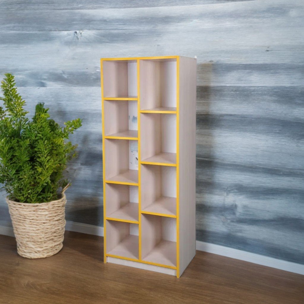 Dimensiuni (Lxlxh): 600 x 410 x 1594 mm Greutate: 39,80 kg Dulap școlar de tip deschis, fabricat din PAL laminat de 16 mm, cu spate din PFL laminat alb de 3 mm. Fațada este finisată cu cant ABS galben de 1 mm pentru protecție și durabilitate. Echipat cu 9 rafturi deschise, oferă spațiu optim pentru organizarea materialelor educaționale sau a rechizitelor. Asamblare sigură cu elemente de fixare speciale. Culoare corp: stejar deschis