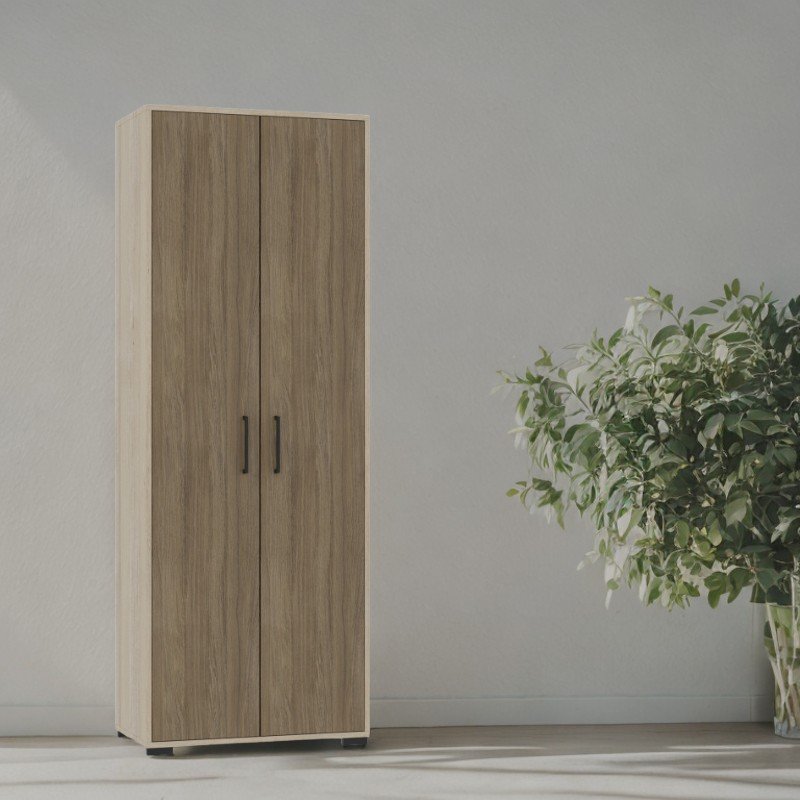 Dimensiuni (L×l×h): 719×405×2025 mm. Dulapul este realizat din PAL melaminat cu grosime de 18 mm. Fațada este finisată cu cant ABS de 1 mm, iar piesele interioare cu cant ABS de 0,5 mm. Peretele din spate este din PFL melaminat alb, cu grosime de 3 mm. Dulapul conține 5 rafturi închise, iar ușile sunt dotate cu mânere. Polițele permit reglarea distanței între ele. Piesele sunt asamblate cu elemente de fixare speciale și sigure. Baza dulapului este dotată cu picioare din plastic reglabile. Culori disponibile: perlă artizan, stejar urban cafeniu, stejar deschis.
