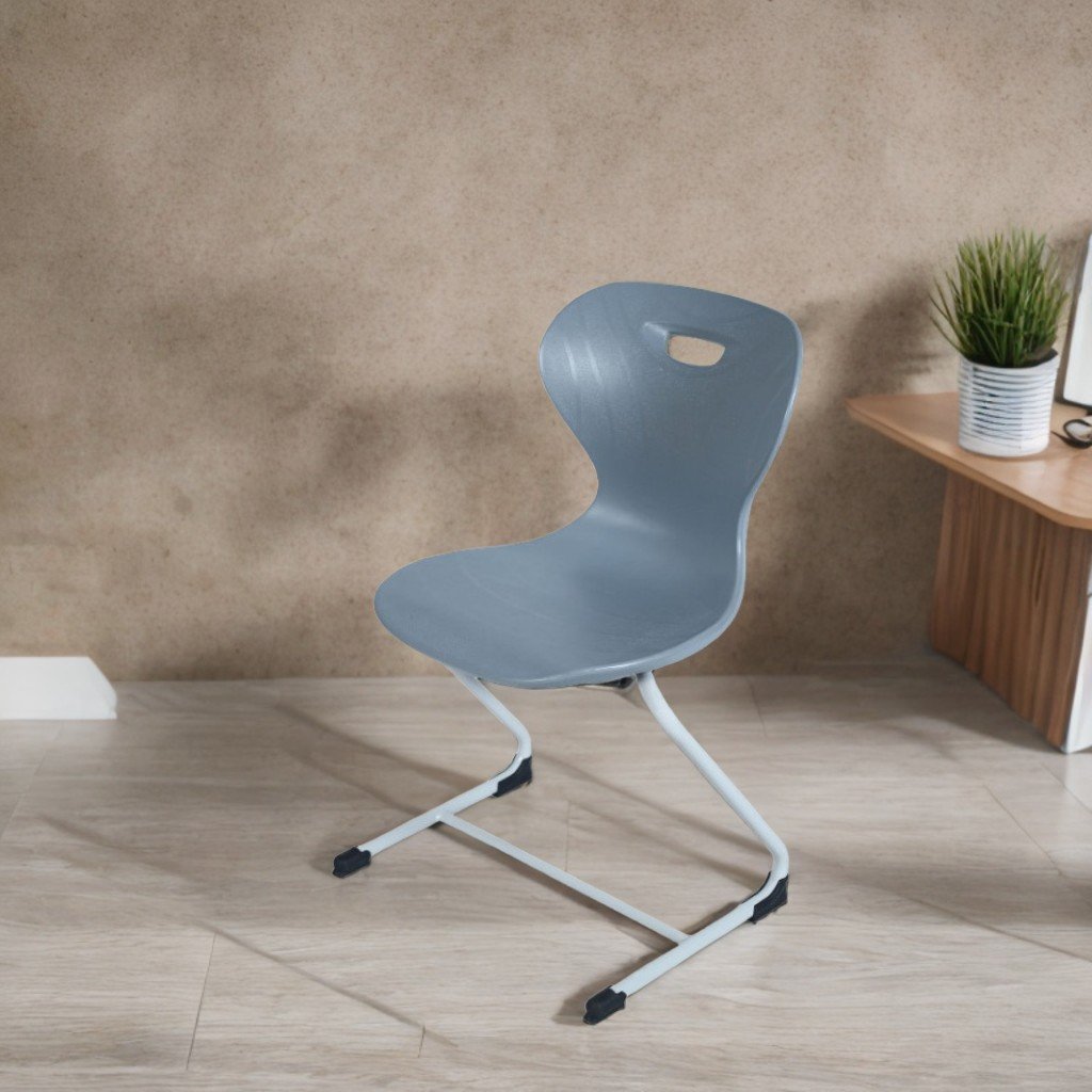 Dimensiuni generale (L×A×Î): 440×450×460 mm. Cadrul este realizat din țeavă metalică rotundă cu diametrul de 22 mm, acoperit cu vopsea pulbere polimerică, rezistentă la uzură mecanică și coroziune. Șezutul și spătarul sunt fabricate din plastic durabil, rezistent la umiditate. Forma în „Z” a picioarelor conferă stabilitate și un design modern. Toate marginile sunt rotunjite pentru siguranță și confort sporit. Culori disponibile pentru plastic: violet, galben, turcoaz, verde închis, albastru închis, galben lămâie, crem, bordo, antracit, gri deschis, gri, roșu, verde. Culoare cadru: gri (RAL 703