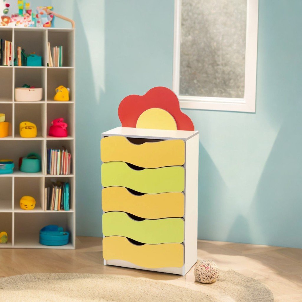 Disponibil într-o combinație plăcută de culori – galben, verde lămâie, bej și roșu – dulăpiorul devine o piesă centrală în orice spațiu destinat copilăriei. Produsul beneficiază de o garanție de 24 de luni.