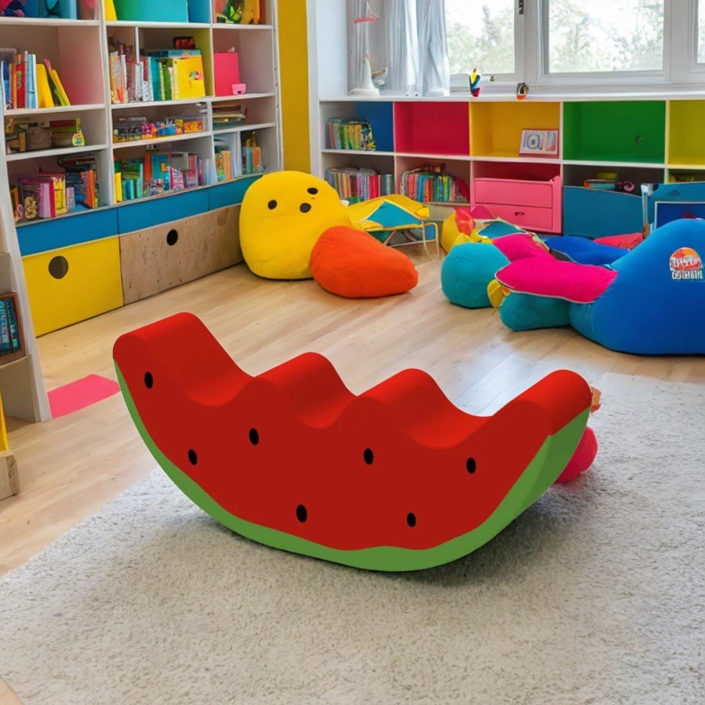 Balansoar „Pepene verde” este conceput pentru a legăna până la patru copii și stimulează dezvoltarea abilităților motorii, funcțiile vestibulare și întărește mușchii.