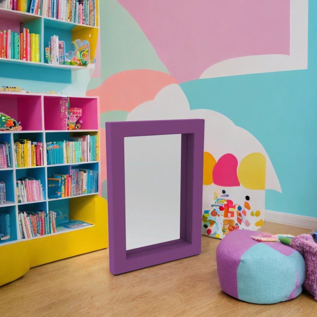 Modul softplay "Oglindă dreptunghiulară" oferă joacă sigură și distracție, fiind potrivit chiar și pentru cei mai mici copii. Stimulează activitatea și dezvoltarea imaginației. Potrivit pentru uz casnic și instituții educaționale. Dimensiuni: 55x75x6 cm. Material: piele ecologică/țesătură PVC, densitate cauciuc spumos 22 kg/m³. Culori: galben-violet-verde-roz / violet / verde.
