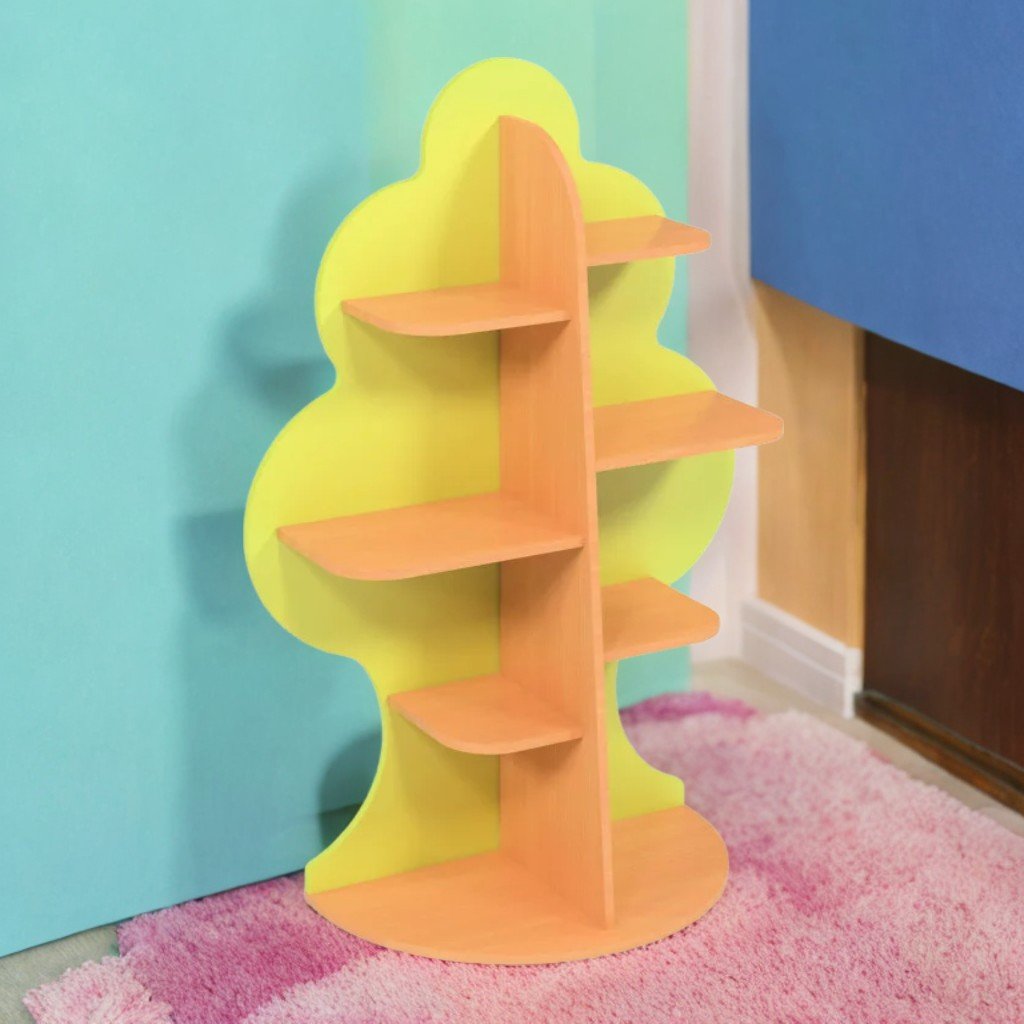 Dimensiuni (L x l x H): 1010 x 450 x 1500 mm. Etajera este concepută sub forma unui copac, oferind un design original și jucăuș. Este fabricată din PAL melaminat cu grosimea de 18 mm, iar peretele din spate, care reprezintă coroana copacului, este realizat din MDF de 16 mm. Etajera dispune de 6 polițe deschise, ideale pentru depozitare și organizare. Culoarea rafturilor este stejar, iar peretele din spate este vopsit într-o nuanță vibrantă de lime. Termen de garanție: 24 luni.