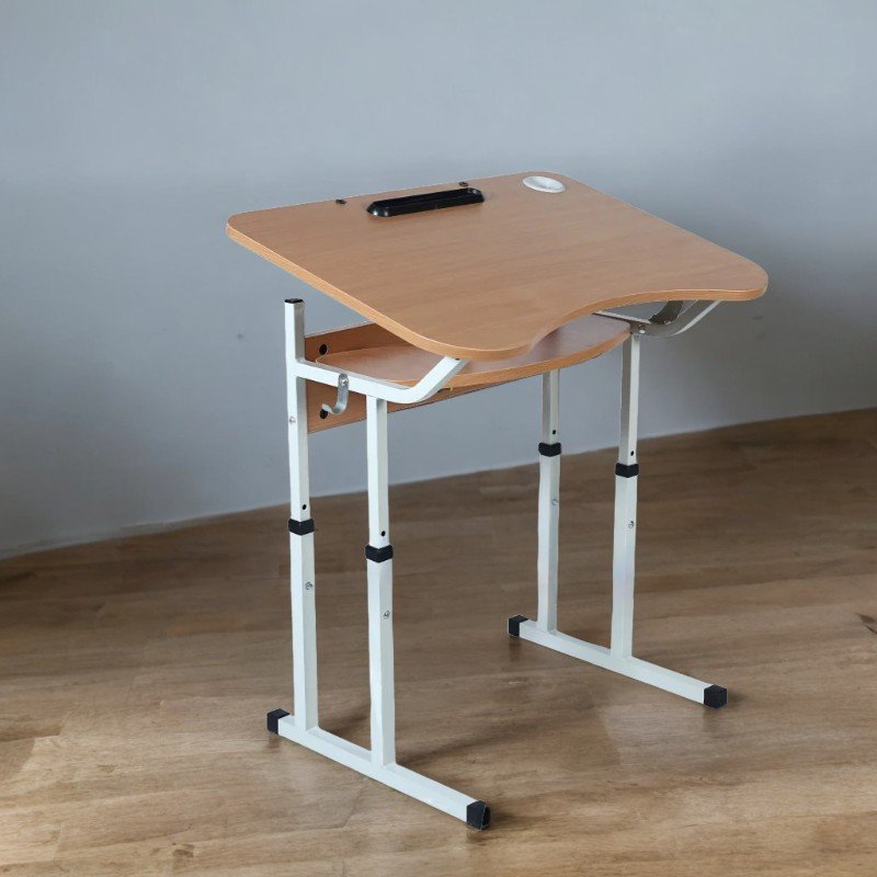 Blatul este ergonomic, neted, cu colțuri rotunjite și poate fi utilizat atât orizontal, cât și în poziții înclinate pentru confort sporit la scris sau citit. Dispune de compartiment pentru pixuri, suport pentru pahar și suport pentru carte.