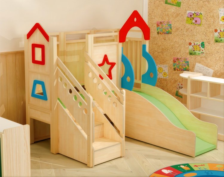 Fabricat din placaj robust, acest complex este proiectat pentru a rezista în timp, oferind un spațiu sigur și distractiv pentru copii. Lateralele sunt realizate din MDF colorat, cu colțuri și rafturi rotunjite pentru protecție sporită.